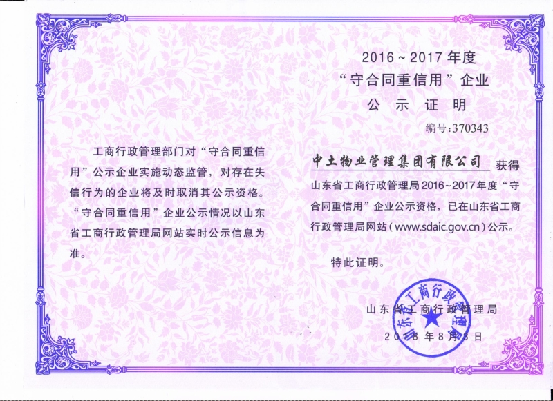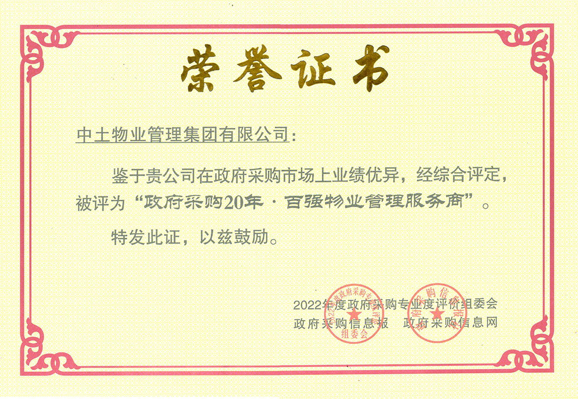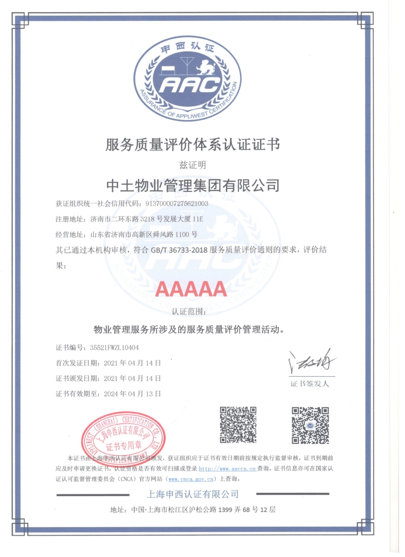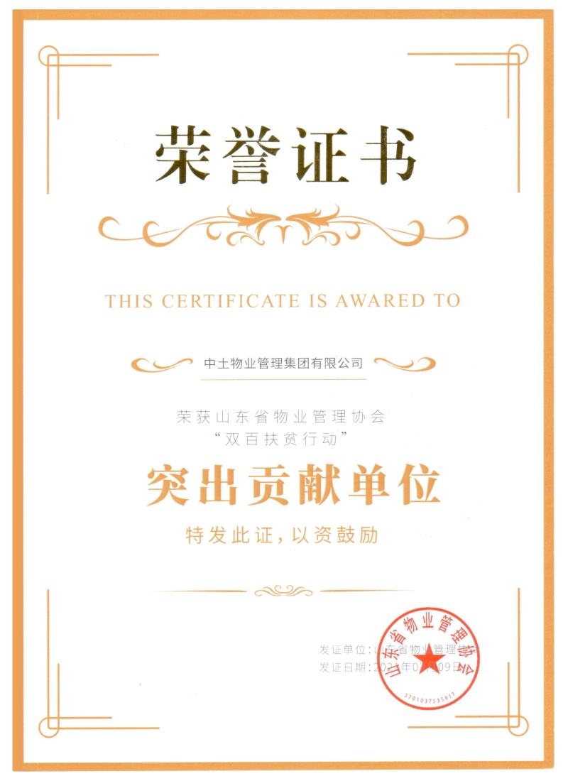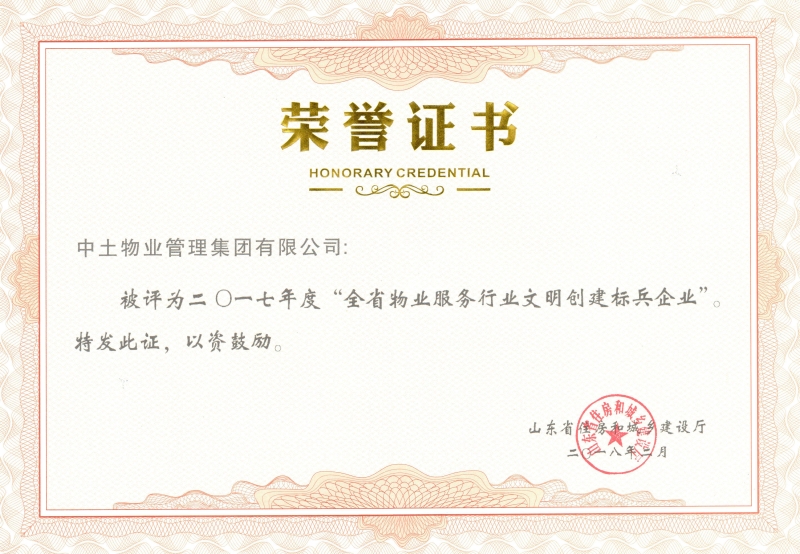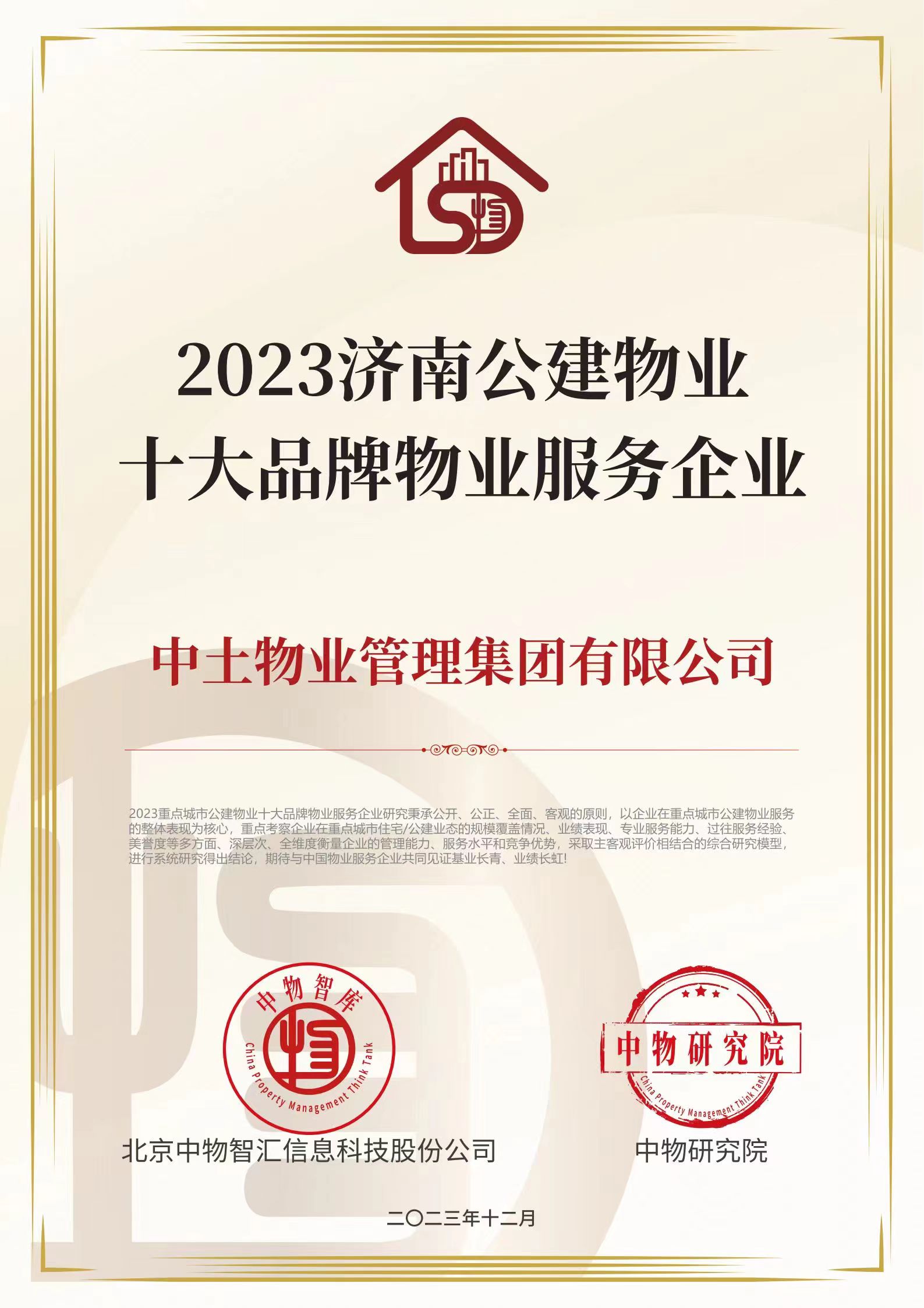 作為具備國(guó)家物業(yè)管理一級(jí)資質(zhì)的物業(yè)企業(yè),中土物業(yè)現(xiàn)任中國(guó)物業(yè)管理協(xié)會(huì)常務(wù)理事單位、山東省物業(yè)管理協(xié)會(huì)常務(wù)理事單位、山東省房地產(chǎn)業(yè)協(xié)會(huì)常務(wù)理事單位、濟(jì)南市物業(yè)管理行業(yè)協(xié)會(huì)名譽(yù)副會(huì)長(zhǎng)單位、濟(jì)南市物業(yè)服務(wù)團(tuán)體標(biāo)準(zhǔn)編寫單位。連續(xù)多年入圍物業(yè)服務(wù)綜合實(shí)力百?gòu)?qiáng)企業(yè),物業(yè)服務(wù)企業(yè)品牌價(jià)值100強(qiáng)、并獲得了行政辦公物業(yè)服務(wù)領(lǐng)先企業(yè)、公眾場(chǎng)館物業(yè)服務(wù)領(lǐng)先企業(yè)、中國(guó)國(guó)際物業(yè)管理產(chǎn)業(yè)博覽會(huì)推薦價(jià)值企業(yè)、物業(yè)服務(wù)特色企業(yè)(辦公物業(yè))、山東省物業(yè)服務(wù)行業(yè)文明創(chuàng)建標(biāo)兵企業(yè)、山東房地產(chǎn)20年品牌企業(yè)、濟(jì)南市物業(yè)服務(wù)行業(yè)文明創(chuàng)建標(biāo)兵企業(yè)、濟(jì)南市最具行業(yè)影響力企業(yè)、濟(jì)南市物業(yè)服務(wù)標(biāo)準(zhǔn)化先進(jìn)企業(yè)等多項(xiàng)榮譽(yù),所托管項(xiàng)目多次被評(píng)為國(guó)家、省及市級(jí)物業(yè)管理優(yōu)秀示范大廈。