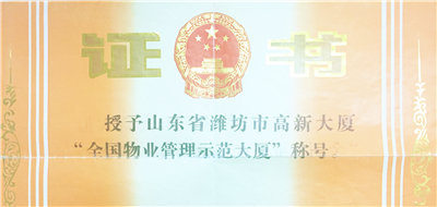 1、濰坊高新大廈物業(yè)管理項目被評為“全國物業(yè)管理示范大廈”(首個國優(yōu)項目)