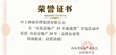 4、榮獲“山東房地產(chǎn)20年品牌企業(yè)獎”
