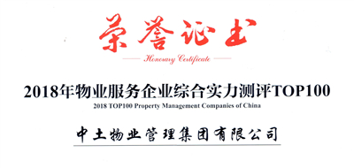 3、榮獲“2018中國物業(yè)服務(wù)百強企業(yè)(第37名)”稱號