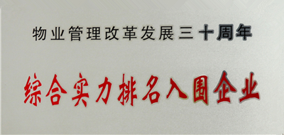 5、榮獲“全國物業(yè)管理改革發(fā)展三十周年綜合實力排名入圍企業(yè)”稱號