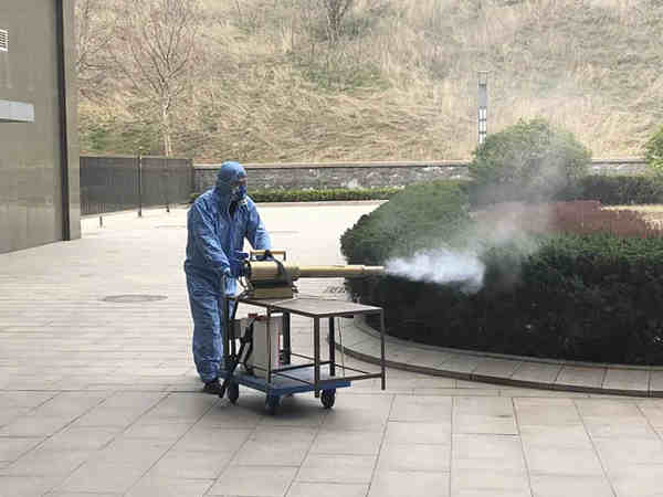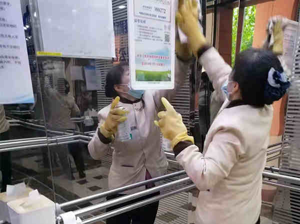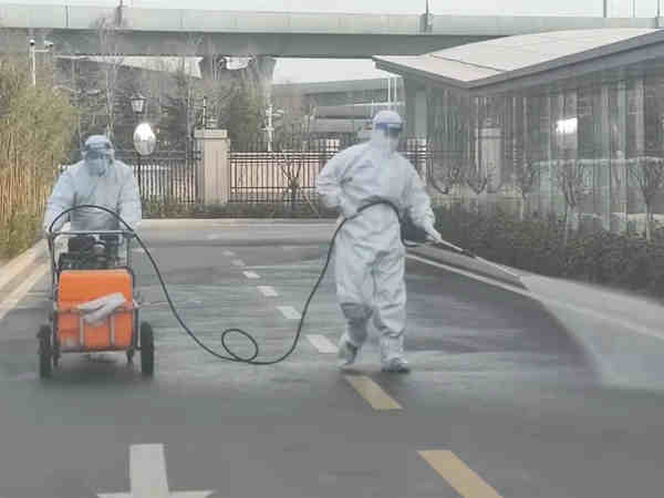 其中,萊西電業(yè)公司物業(yè)管理處面對近兩萬多平方的一小時一次的循環(huán)消毒消殺任務(wù),物業(yè)員工24小時住在項目,不間斷地忙碌。