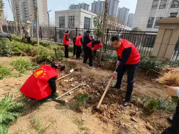 濟(jì)寧公司黨員先鋒服務(wù)隊組織黨員志愿者來到兗州春都華府小區(qū)物業(yè)管理處開展植樹活動?;顒娱g隙,志愿者們不忘向來往的行人和駐足觀看的業(yè)主普及環(huán)保知識,號召大家一起加入護(hù)綠、養(yǎng)綠行列。